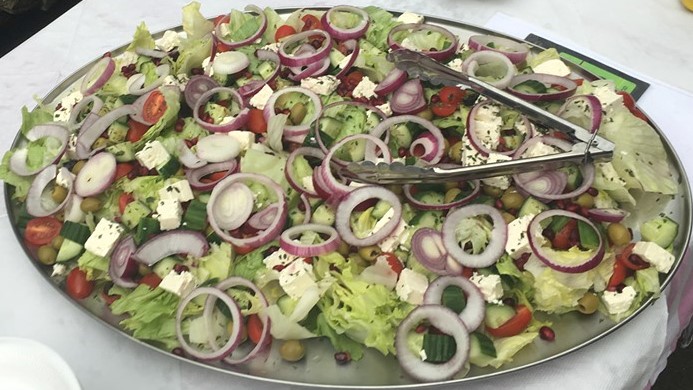Accompaniments included the Mediterranean platters, Greek salads, and a variety of desserts.